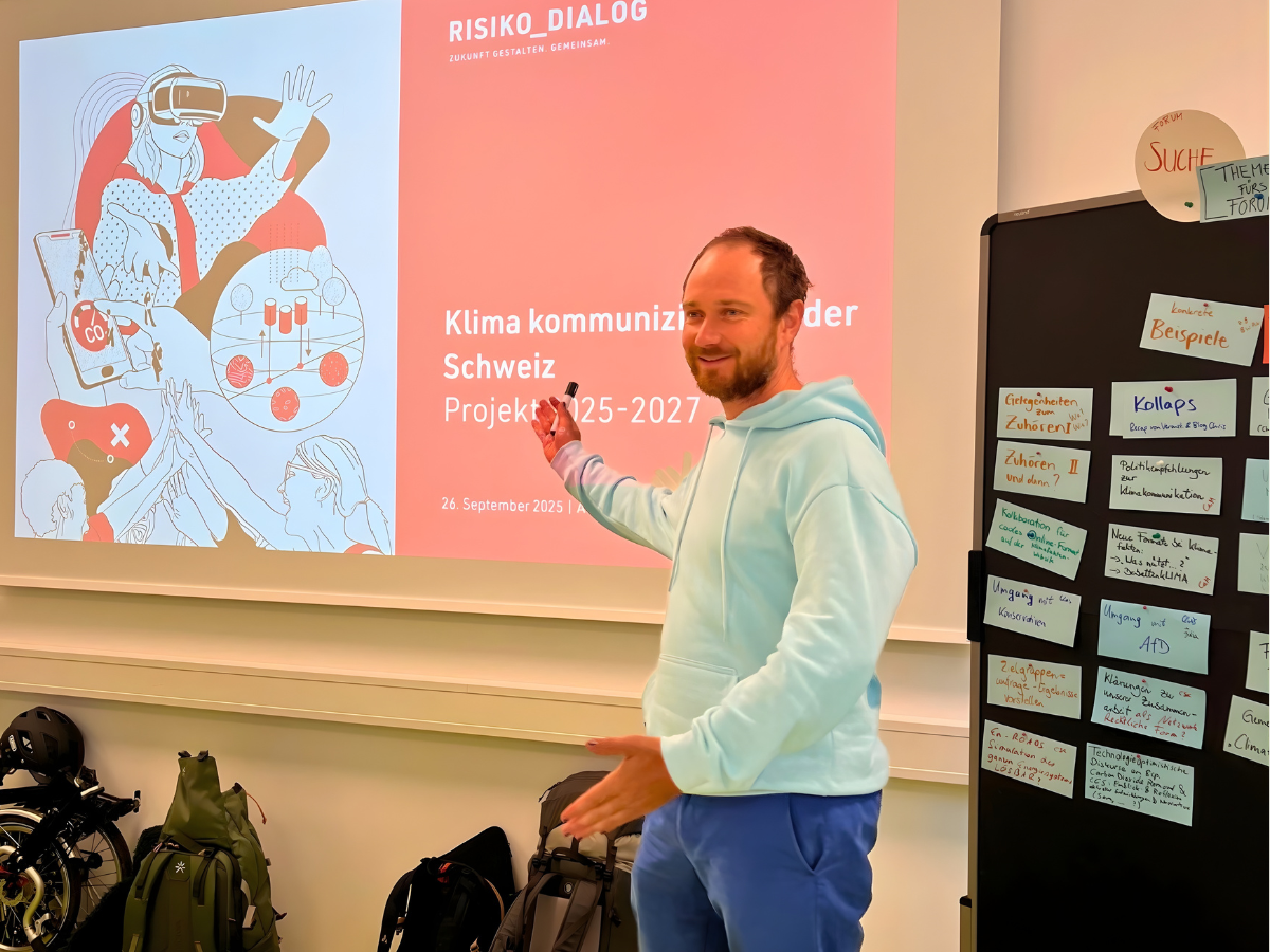 Samuel Eberenz stellte in Berlin das neue Projekt «Netzwerk Klima kommunizieren» vor, das Risiko-Dialog gemeinsam mit der Kommunikationsagentur catta realisiert. Dabei diskutierte er mit den Teilnehmenden über Ideen, Ziele und offene Fragen des Projekts. «Für uns war es besonders wertvoll, Einblicke in die Erfahrungen anderer Netzwerke zu erhalten und von den methodischen Grundlagen von klimafakten und dem Netzwerk Klima Kommunizieren zu lernen», so Samuel Eberenz.